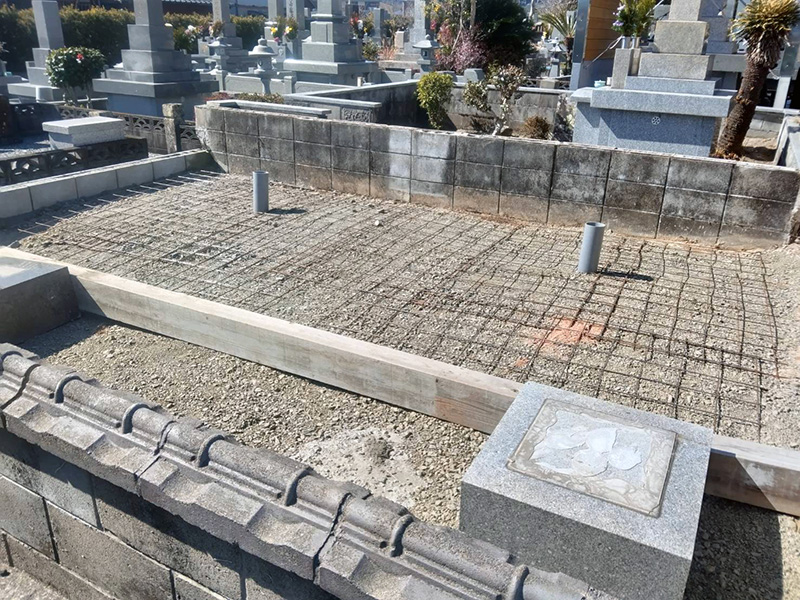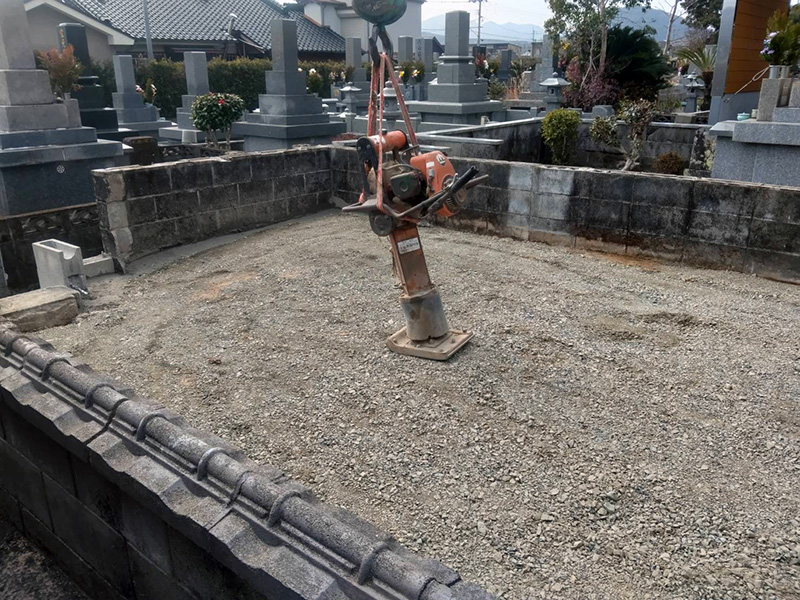 当店は自然石を使用したお墓を作成するため、通常のお墓の基礎よりも頑強で丈夫な基礎を作り上げています。