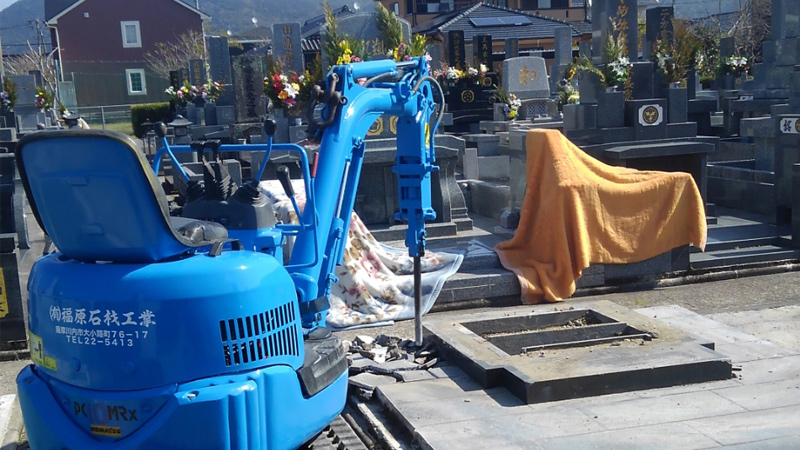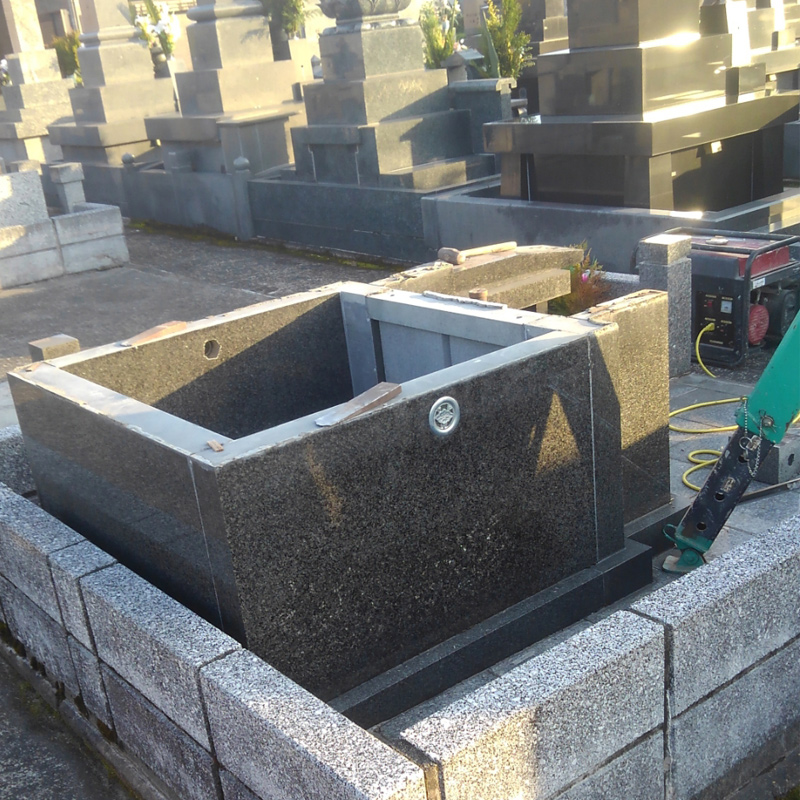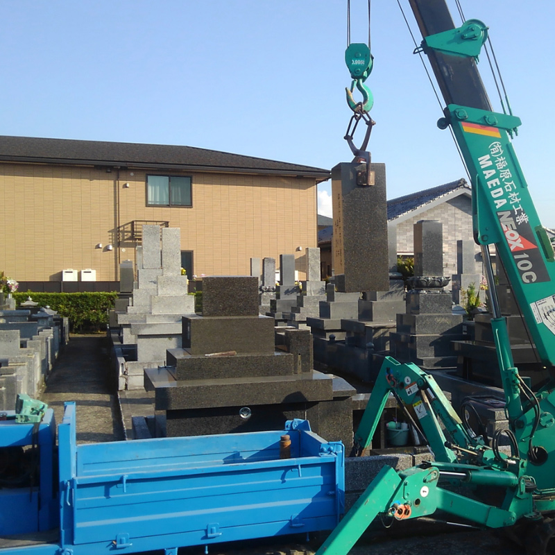 墓石の加工、基礎工事、石碑等の制作、文字の彫刻、建墓工事などを行います。各施工は図面に基づいて丁寧確実な施工をいたします。