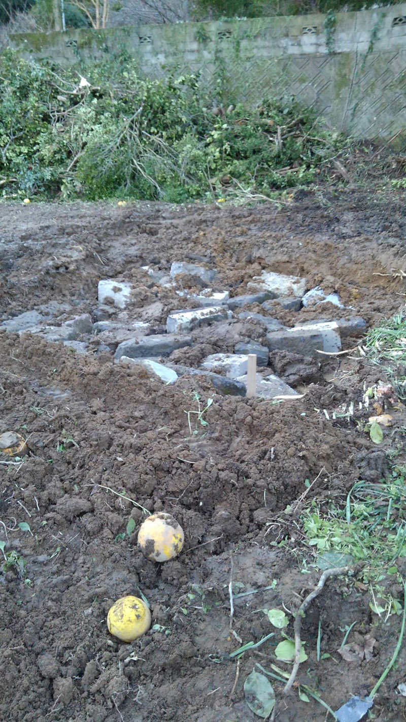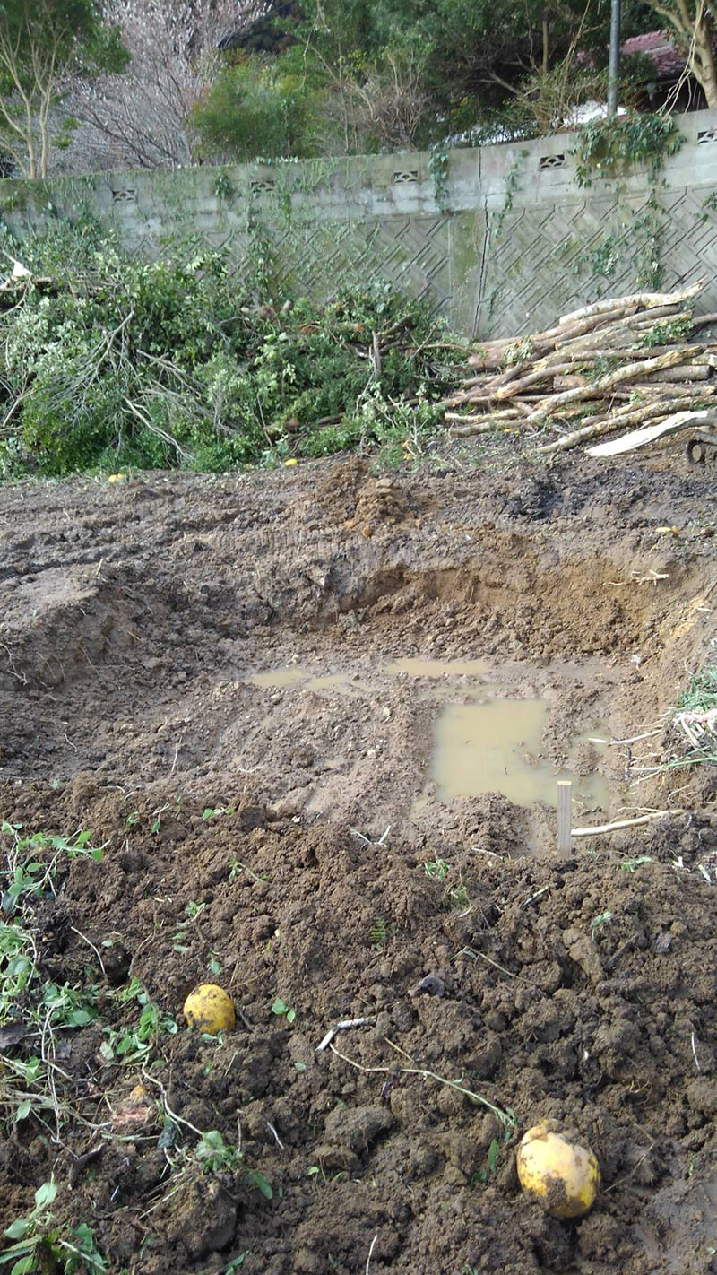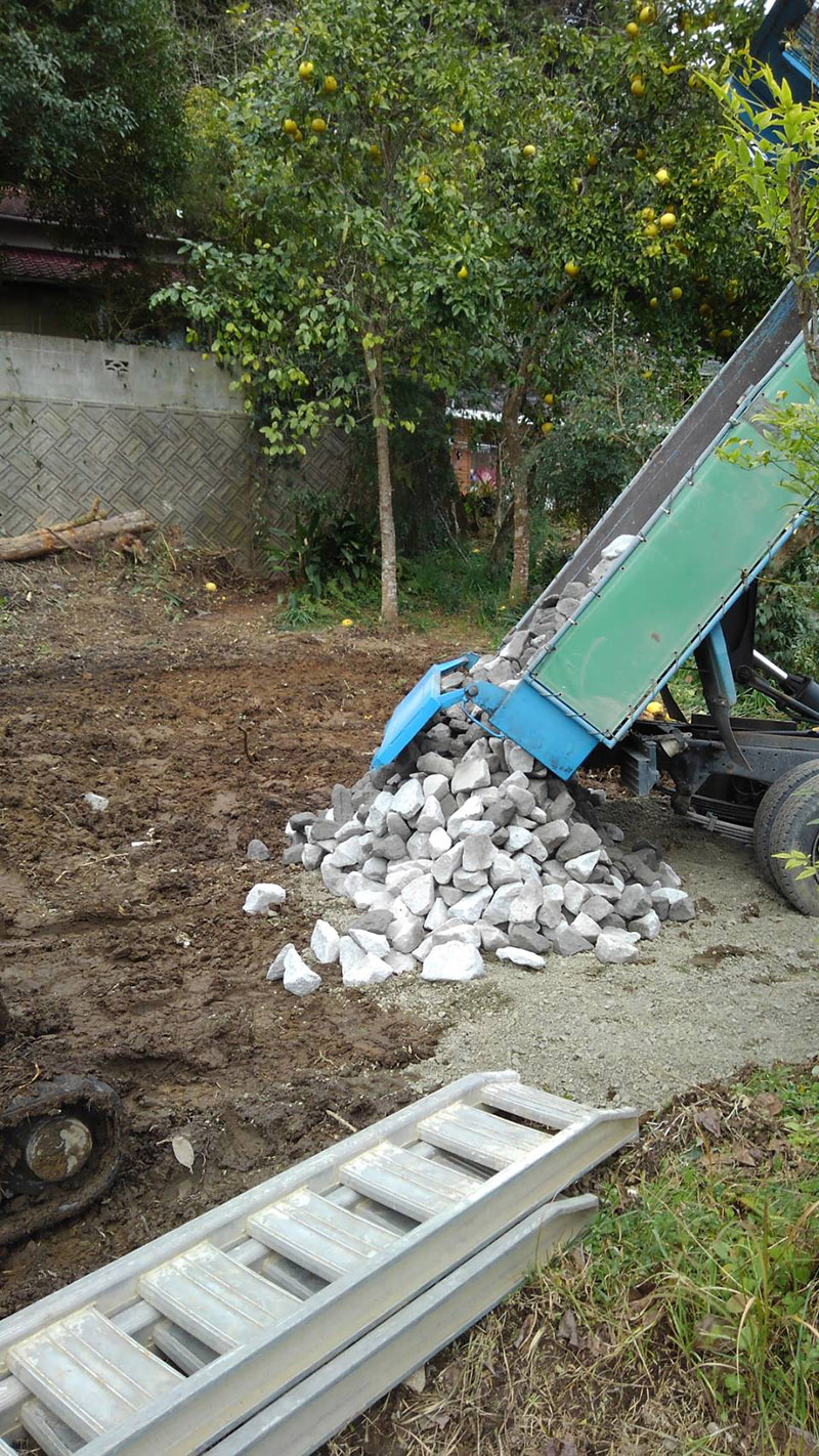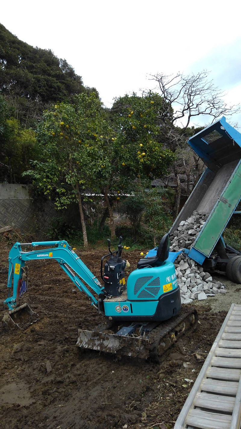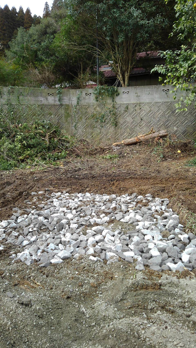 地盤を掘り下げ、基礎の下にさらに石材を埋め、基礎の安定性と耐震強度を高めています。