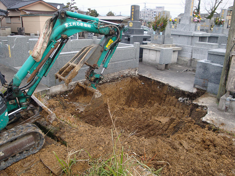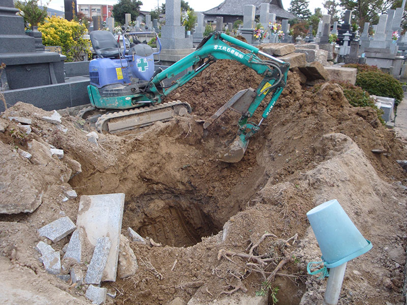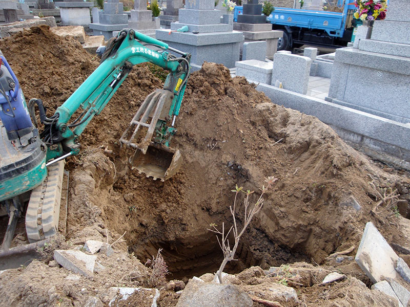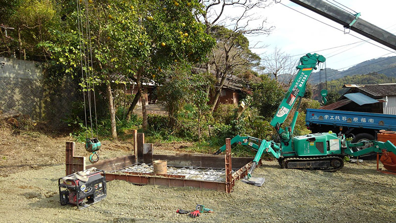 当店は自然石を使用したお墓を作成するため、通常のお墓の基礎よりも頑強で丈夫な基礎を作り上げています。